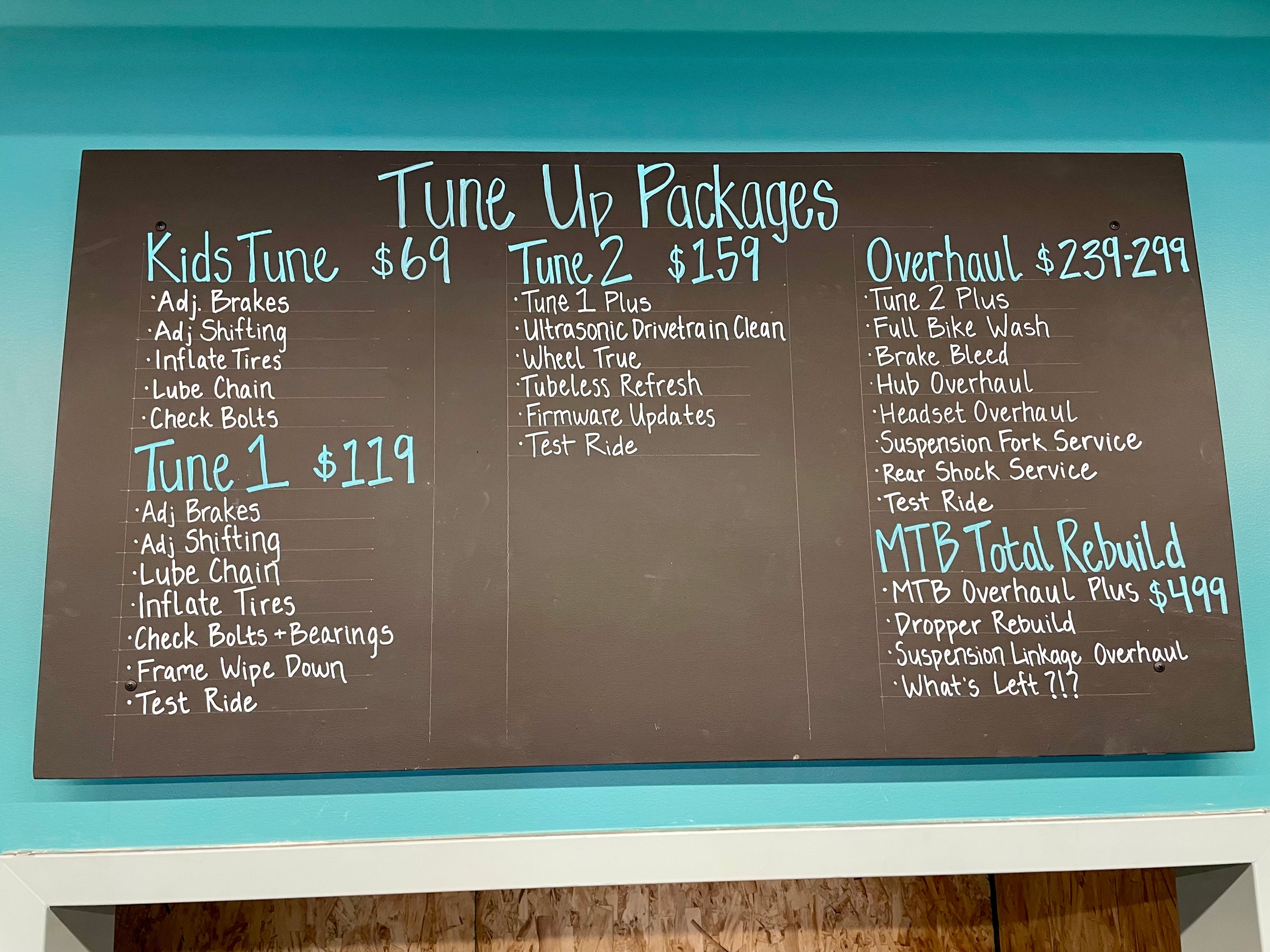 We're a full service bike shop and we offer so many more services than just tune ups. Check out our full service menu!